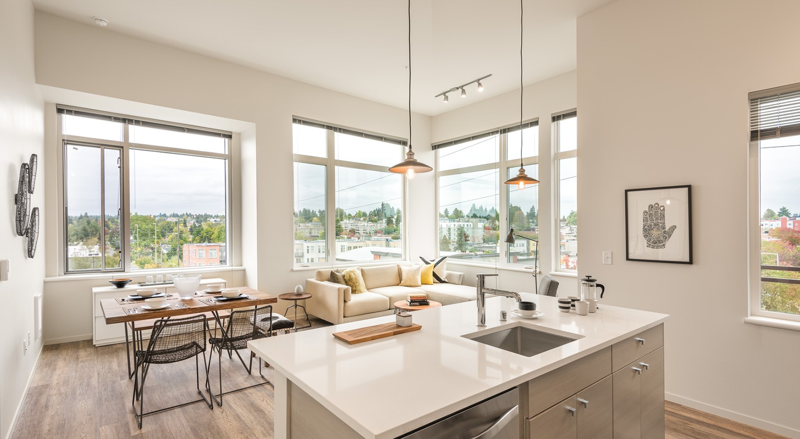 • kitchen and dining room with large windows